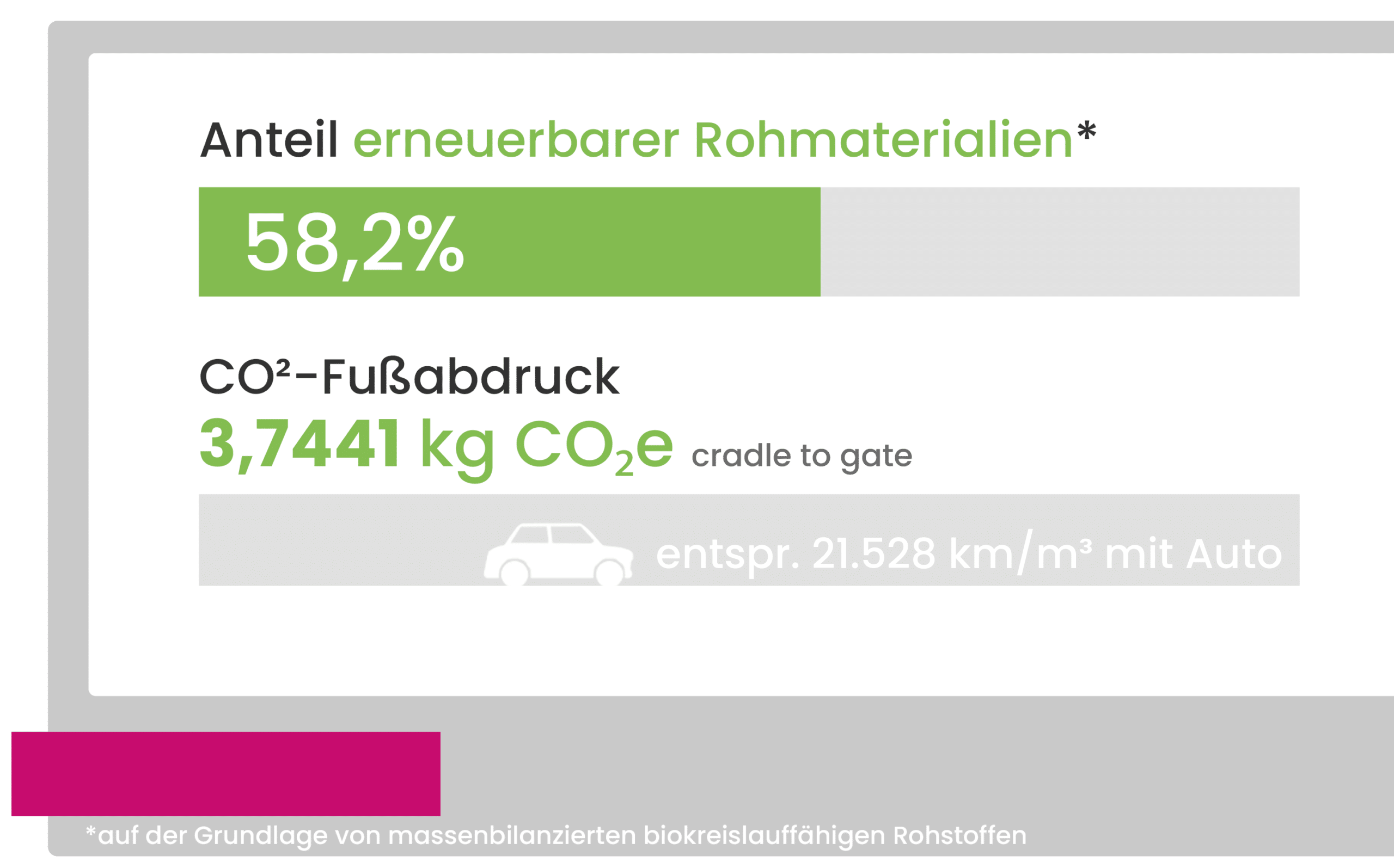 🌱 Enthält zu 58,2% erneuerbare Rohmaterialien.