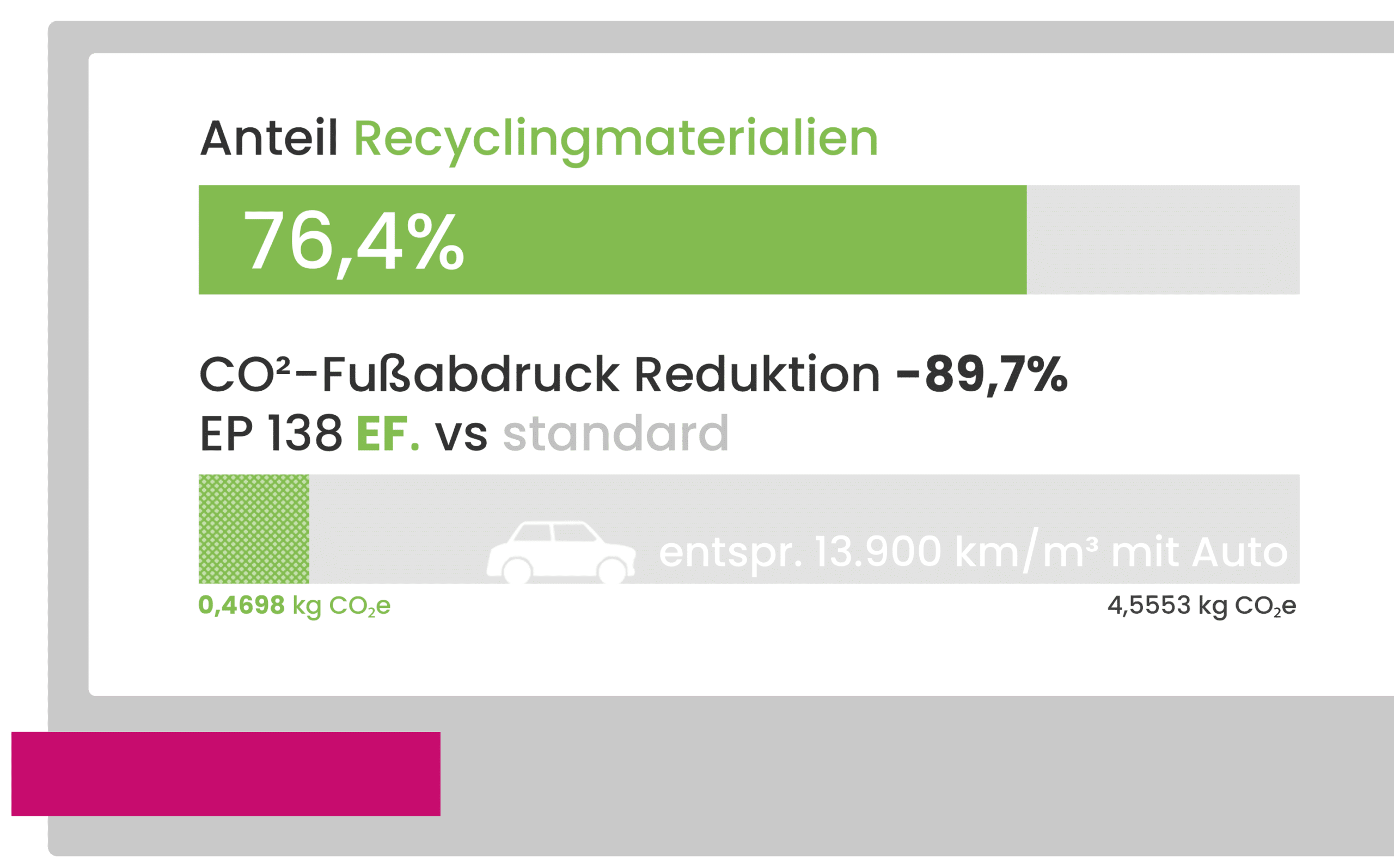 Reduzierung des CO2-Fußabdrucks um 76,7% im Vergleich zu einer Standard EP-Platte.